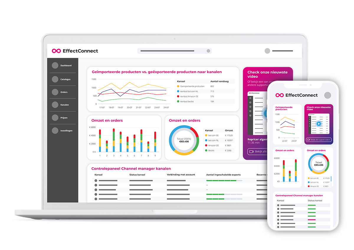 We verzamelen de beste en mooiste partners om ons heen. Eén daarvan is EffectConnect. Via hun platform is verkopen via meerdere marketplaces een eitje. Hun platform biedt hele fijne functionaliteiten, waaronder complete orderkoppelingen, product-feed management en prijsoptimalisaties.